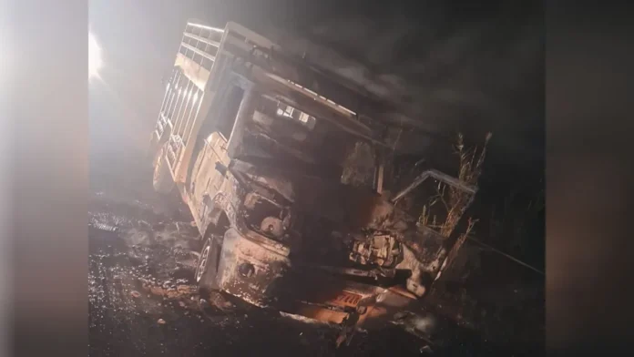 बदायूं। थाना उघैती क्षेत्र में चलती पिकअप में अचानक आग लग गई। शॉर्ट सर्किट से पिकअप के इंजन से चिंगारी उठते ही चालक ने बाहर कूदकर जान बचाई। कुछ ही समय में पिकअप पूरी तरह से जल गई।