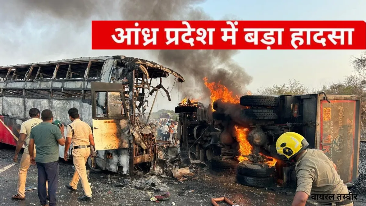 आंध्र प्रदेश के मार्कापुरम जिले में एक बस में आग लगने से कम से कम आठ लोगों की मौत हो गई और लगभग 18 लोग घायल हो गए। पुलिस ने यह जानकारी दी। स्थानीय टीवी चैनलों के अनुसार, बस बजरी से लदे एक टिपर ट्रक से टकरा गई थी। पुलिस ने बताया कि कुछ यात्रियों को मामूली चोटें आई हैं और उनका एक अस्पताल में उपचार किया जा रहा है।