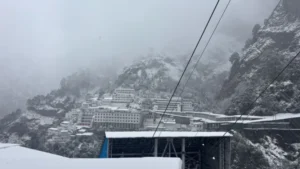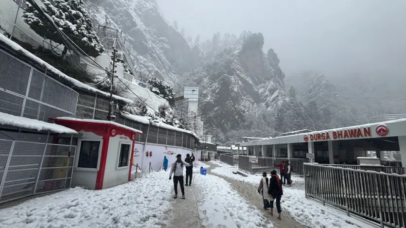 त्रिकुटा पहाड़ियों में, जहां माता वैष्णो देवी का पवित्र तीर्थस्थल स्थित है, वहां बर्फबारी हुई, जिससे तीर्थयात्रियों और स्थानीय लोगों में खुशी की लहर दौड़ गई। भवन और आस-पास की पहाड़ियों सहित तीर्थस्थल के ऊपरी इलाकों में ताज़ी बर्फ की चादर बिछ गई, जिससे पूरा क्षेत्र एक मनमोहक सफेद परिदृश्य में तब्दील हो गया।