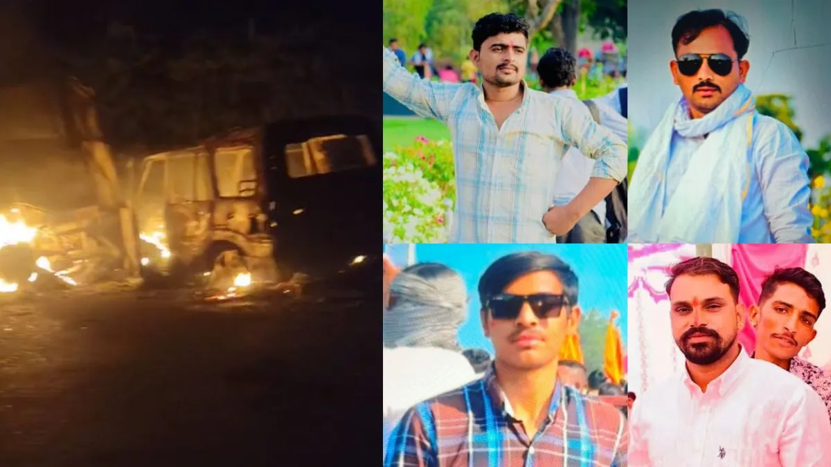 ट्रेलर से भिड़ंत के बाद चार युवकों की कार में जिंदा जलकर हुई मौत