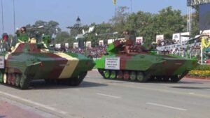 सोमवार को गणतंत्र दिवस के अवसर पर कर्तव्य पथ पर आयोजित परेड के दौरान भारतीय सेना के टी-90 भीष्म टैंक, अर्जुन एमके मुख्य युद्धक टैंक और इसके उसके बाद नाग मिसाइल सिस्टम (TRACKED) MK-2 का भी प्रदर्शन किया गया है।