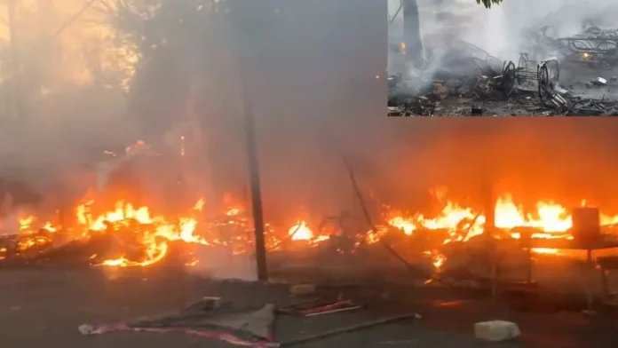यूपी के कानपुर से एक बड़ी घटना सामने आई है। शहर के व्यस्त फूलबाग इलाके स्थित फल मंडी में सोमवार को दोपहर के समय अचानक लगी भीषण आग ने पूरे क्षेत्र को हिलाकर रख दिया। इस दौरान कई सिलेंडर में भी ब्लास्ट की बात सामने आई। आग लगने का कारण पोल से शार्ट सर्किट बताया जा रहा है।