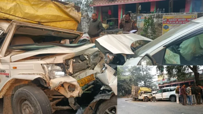 गोंडा : मनकापुर कोतवाली क्षेत्र के गोंडा–मनकापुर मार्ग स्थित झिलाही बाजार में बुधवार देर रात हुए भीषण सड़क हादसे में एक युवक की मौत हो गई, जबकि चार लोग गंभीर रूप से घायल हो गए। हादसा मुर्गा लदी तेज रफ्तार पिकअप और अर्टिगा कार के बीच आमने-सामने की टक्कर से हुआ।