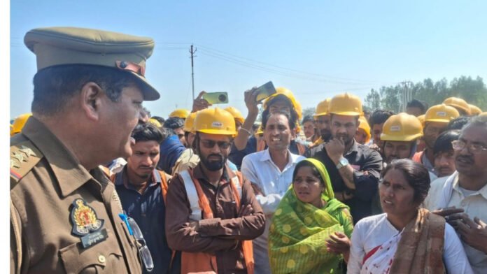 बता दें कि बीती 7 दिसंबर को झारखंड प्रांत के काला पहाड़ निवासी संजय (35) पुत्र गुलाब पासवान की अजगैन कोतवाली क्षेत्र में निर्माणाधीन अल्ट्राटेक सीमेंट फैक्ट्री में कार्य करते समय अचानक मौत हो गई थी। उस समय गोयल कम्पनी के ठेकेदार ने 50 हजार रुपये देकर अंतिम संस्कार करा दिया था और बच्चों की पढ़ाई व पोषण के लिए 25 लाख रुपये देने की बात कही थी। लेकिन करीब तीन माह बाद भी परिजनों को आर्थिक सहायता नहीं मिली।