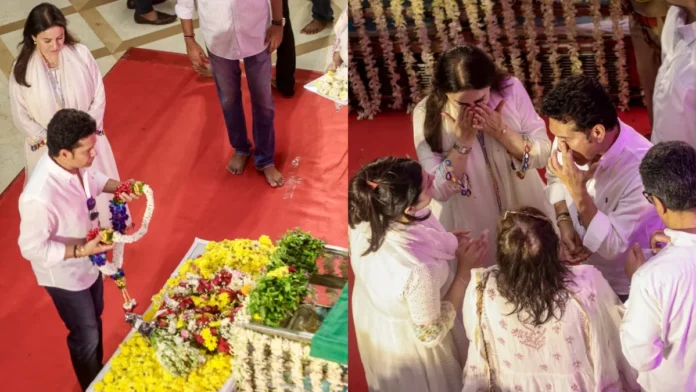 मुंबई में एक भावुक पल ने हर किसी को नम कर दिया, जब भारतीय क्रिकेट के भगवान कहे जाने वाले सचिन तेंदुलकर महान गायिका आशा भोसले को अंतिम विदाई में खुद को संभाल नहीं पाए। सोशल मीडिया पर वायरल हो रहे वीडियो में सचिन को उनकी पत्नी के साथ भोसले के परिवार से बात करते हुए आंसू पोंछते देखा गया। यह नजारा सिर्फ एक श्रद्धांजलि नहीं, बल्कि दो महान हस्तियों के बीच गहरे और निजी रिश्ते की झलक था। सालों से सचिन और आशा भोसले के बीच मां-बेटे जैसा संबंध बताया जाता रहा है। भोसले भी कई मौकों पर सचिन के प्रति अपना स्नेह खुलकर जाहिर कर चुकी थीं।