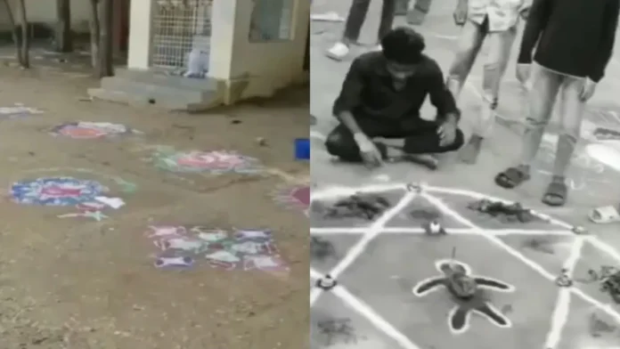 अभी जो वीडियो वायरल हो रहा है उसमें नजर आता है कि स्कूल के ग्राउंड में जगह-जगह कई रंगोलियां बनी हुई हैं। शायद वहां पर रंगोली की कोई प्रतियोगिता हुई होगी जिसमें स्टूडेंट ने अपने मुताबिक अलग-अलग डिजाइन की रंगोलियां बनाई होंगी। वहीं वीडियो में आगे नजर आता है कि कई लोगों की भीड़ एक ही जगह पर जमा है। वीडियो बनाने वाला शख्स वहां जाता है और फिर जो दिखता है, वो हैरान कर देता है। उस बंदे ने रंगोली में ऐसा डिजाइन बनाया है जो सभी को हैरान कर देगा। फिल्मों में जिस तरह से काला जादू के लिए बनाया गया डिजाइन होता है, उसने रंगोली में वैसा ही बनाया है।